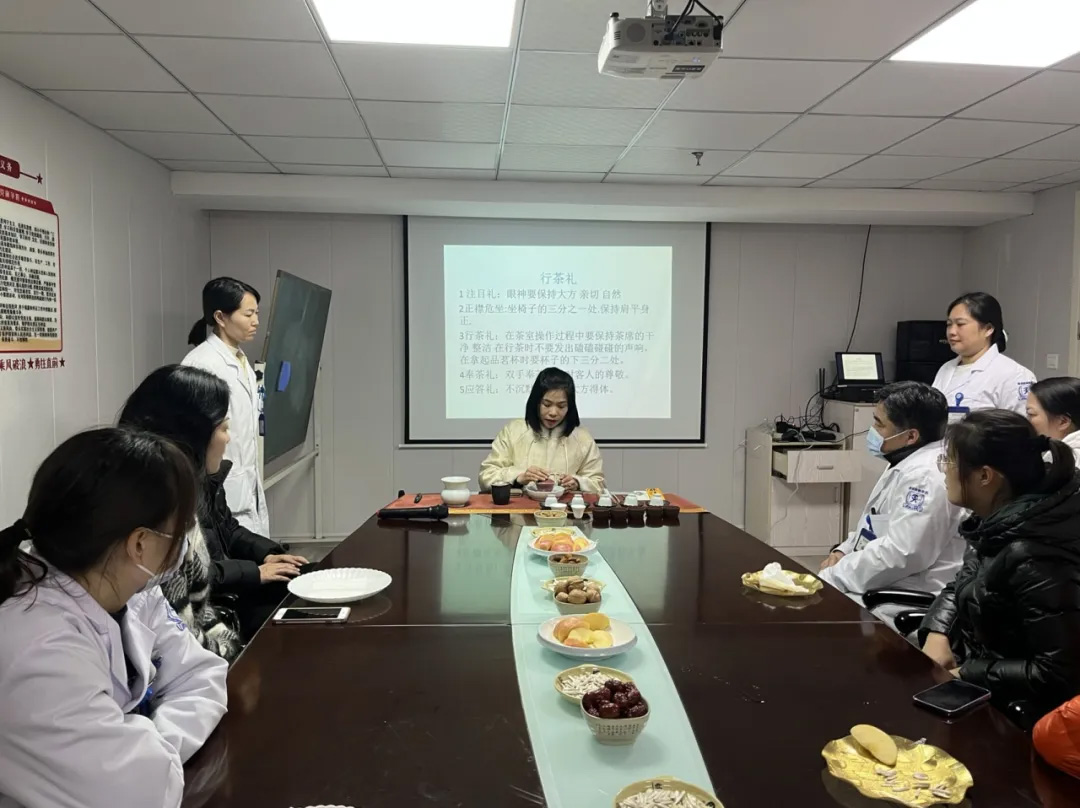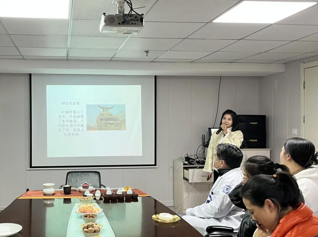 為豐富醫(yī)院職工文化生活,增進(jìn)職工之間的溝通和交流,營(yíng)造溫馨祥和的節(jié)日氛圍,1月10日中午12點(diǎn)在我院工會(huì)組織下開(kāi)展了“輕煮歲月,慢煮茶”新年茶話會(huì)主題活動(dòng),我院工會(huì)特邀春錦茶舍盧老師為四十多名職工科普茶文化。江南街道工會(huì)主席舒紅曉與我院領(lǐng)導(dǎo)一起親臨現(xiàn)場(chǎng)參與其中。