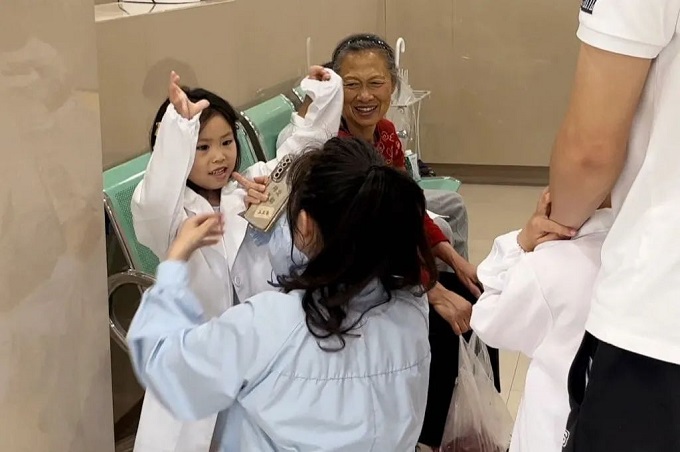 本次活動以“愛眼護眼”為主題,以職業體驗、參觀醫院、互動課堂和證書獎勵的形式開展。為了讓小朋友們能沉浸式體驗“小小眼科醫生”職業,活動開始前小朋友在家長的帶領下有序在簽到板上留下了自己名字和笑臉,接著在一旁領取到自己的小醫生制服,穿上“白大褂”后責任感便油然而生。